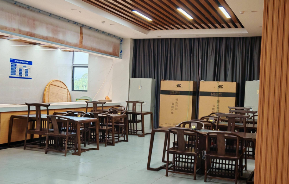 实训室布局雅致且功能分区明确,既有陈设古朴茶桌、茶具的茶艺展示与品鉴区,搭配中式风格的博古架,陈列各类茶品与茶艺相关器物,营造出浓厚的传统茶艺氛围,可供学生开展茶艺表演、茶品冲泡实训及茶文化交流活动;也有配备专业设备的茶艺制作与研习区,助力学生深入学习茶叶的辨识、冲泡技艺及茶艺服务流程。