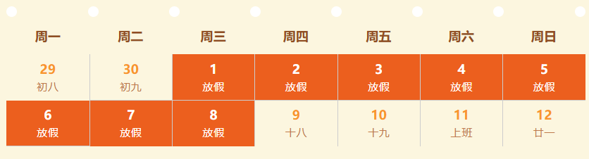 假期前后的9月28日(周日)和10月11日(周六)正常上课/上班,记得调好闹钟哦!