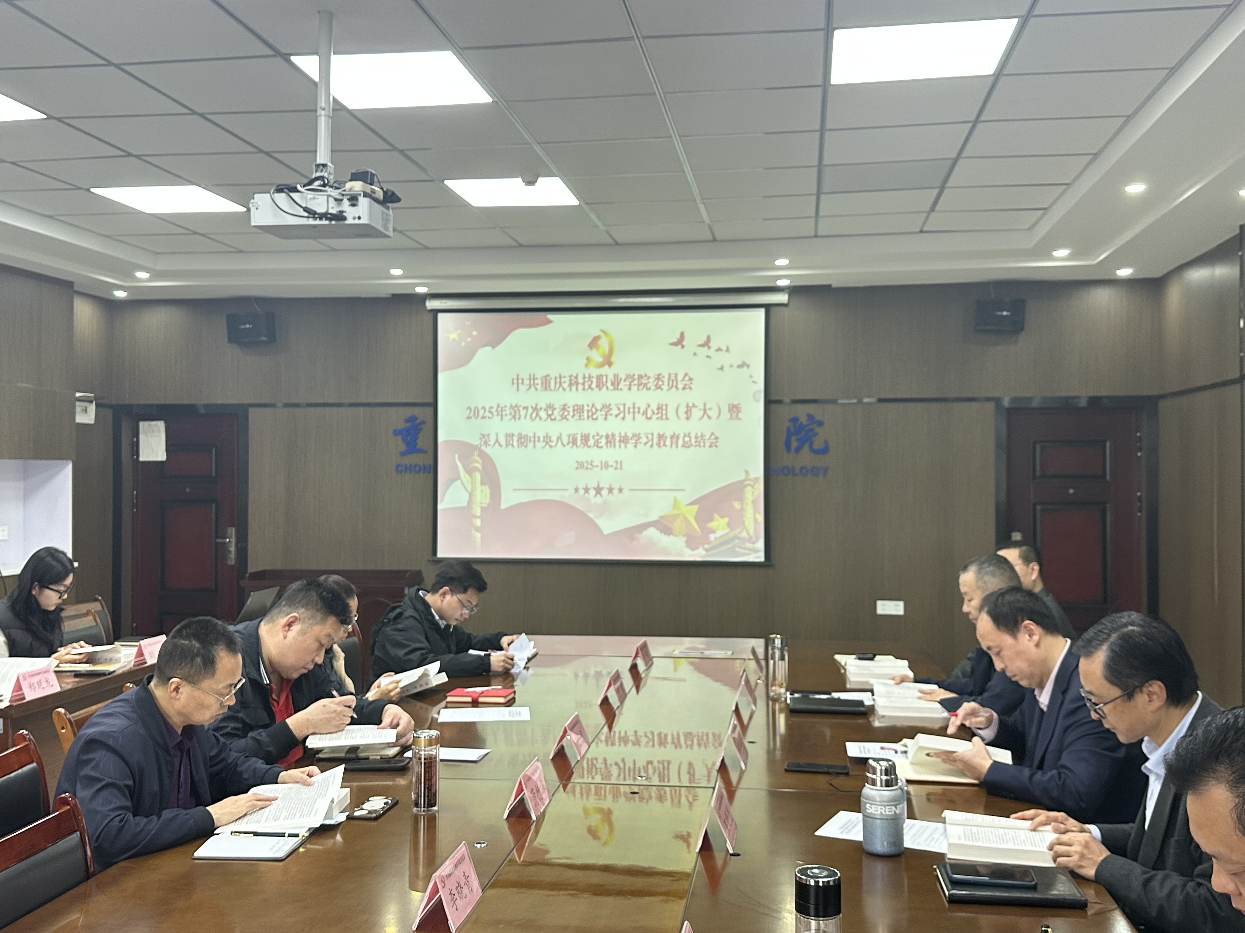 10月21日下午,我校在弘毅楼519会议室召开2025年第7次党委理论学习中心组集中(扩大)学习会暨深入贯彻中央八项规定精神学习教育总结会。全体在家校领导、纪委委员、各党总支、直属党支部书记和党建部、校团委负责人参加会议。党委书记邓泄瑶主持会议。