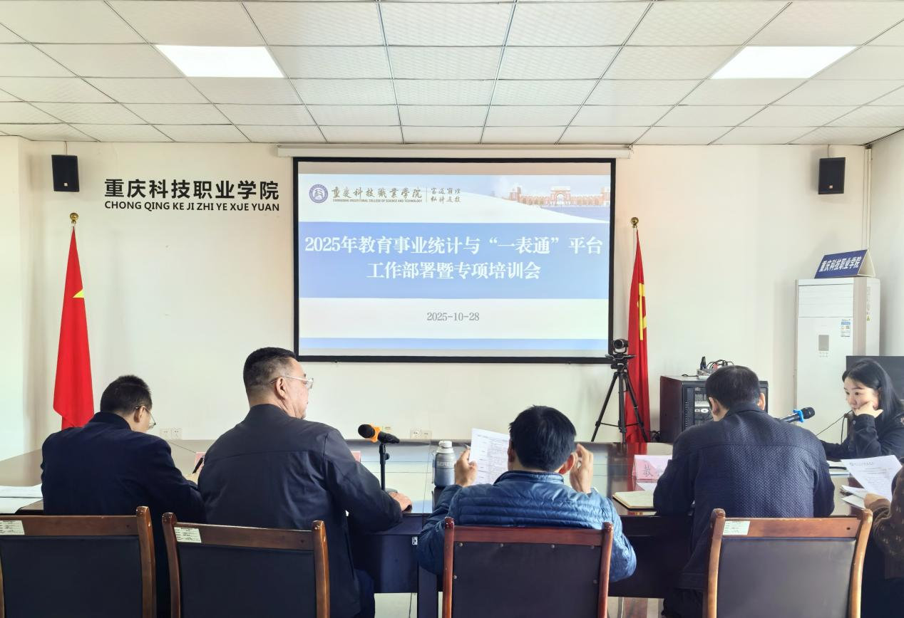 为了更好地落实重庆市2025年教育统计的各项要求,学校于10月28日上午在弘毅楼501会议室召开了“2025年教育事业统计与‘一表通’平台工作部署暨专项培训会”。校长王顺克、副校长陈德林出席了会议,与会人员包括各职能部门负责人、二级学院院长以及数据填报人员,会议由陈德林副校长主持。